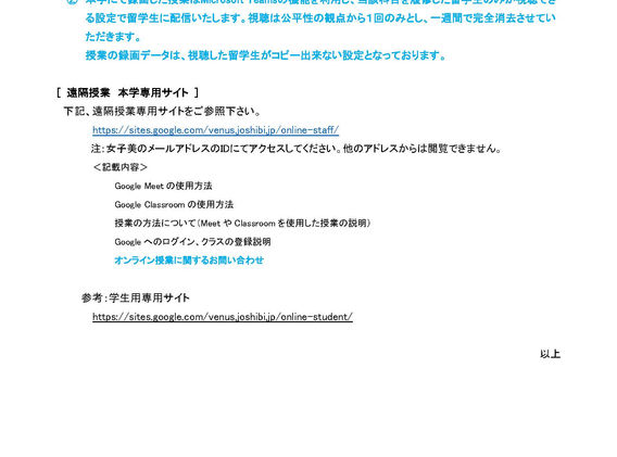2020年度前期 オンライン授業についての教育支援センターから教員への通知